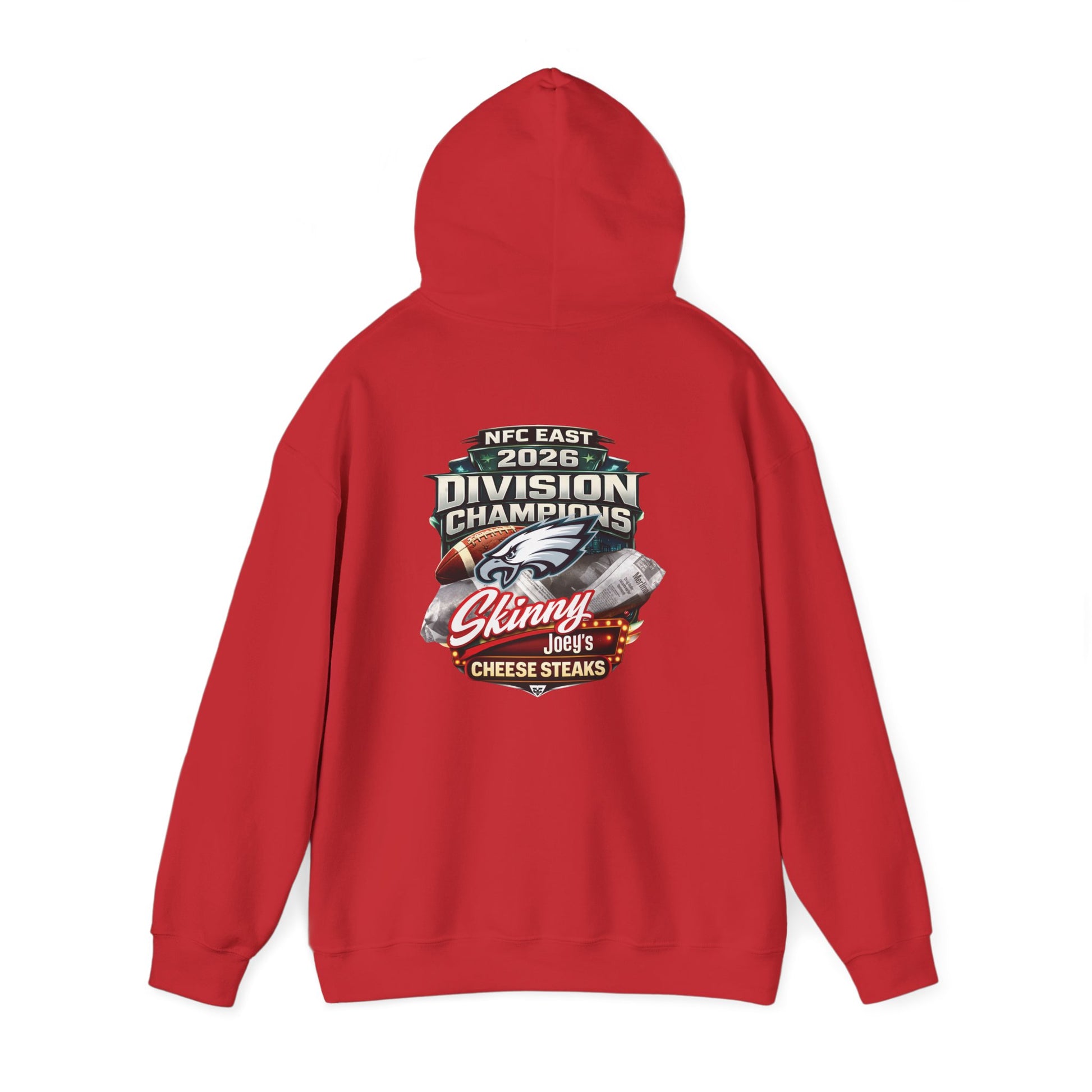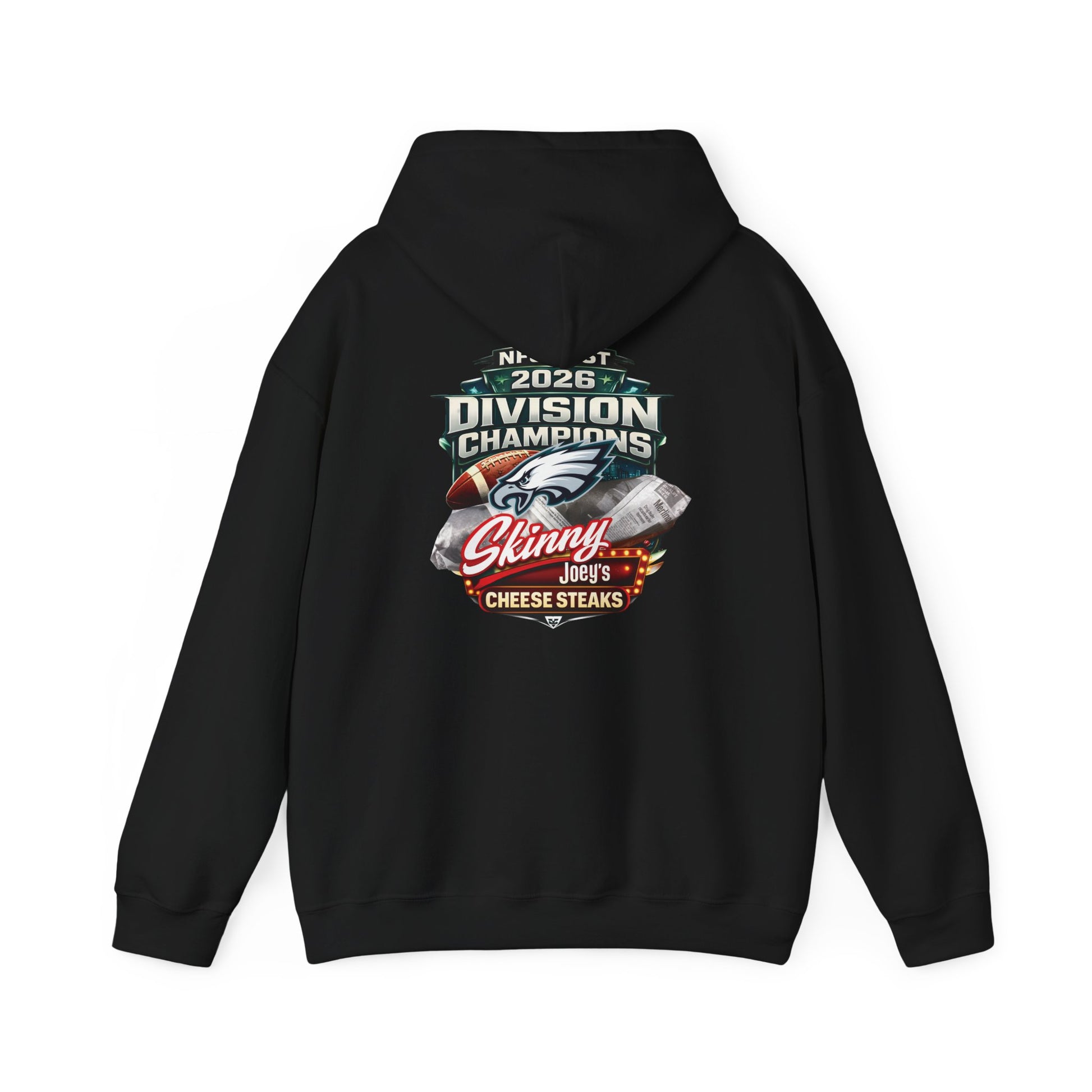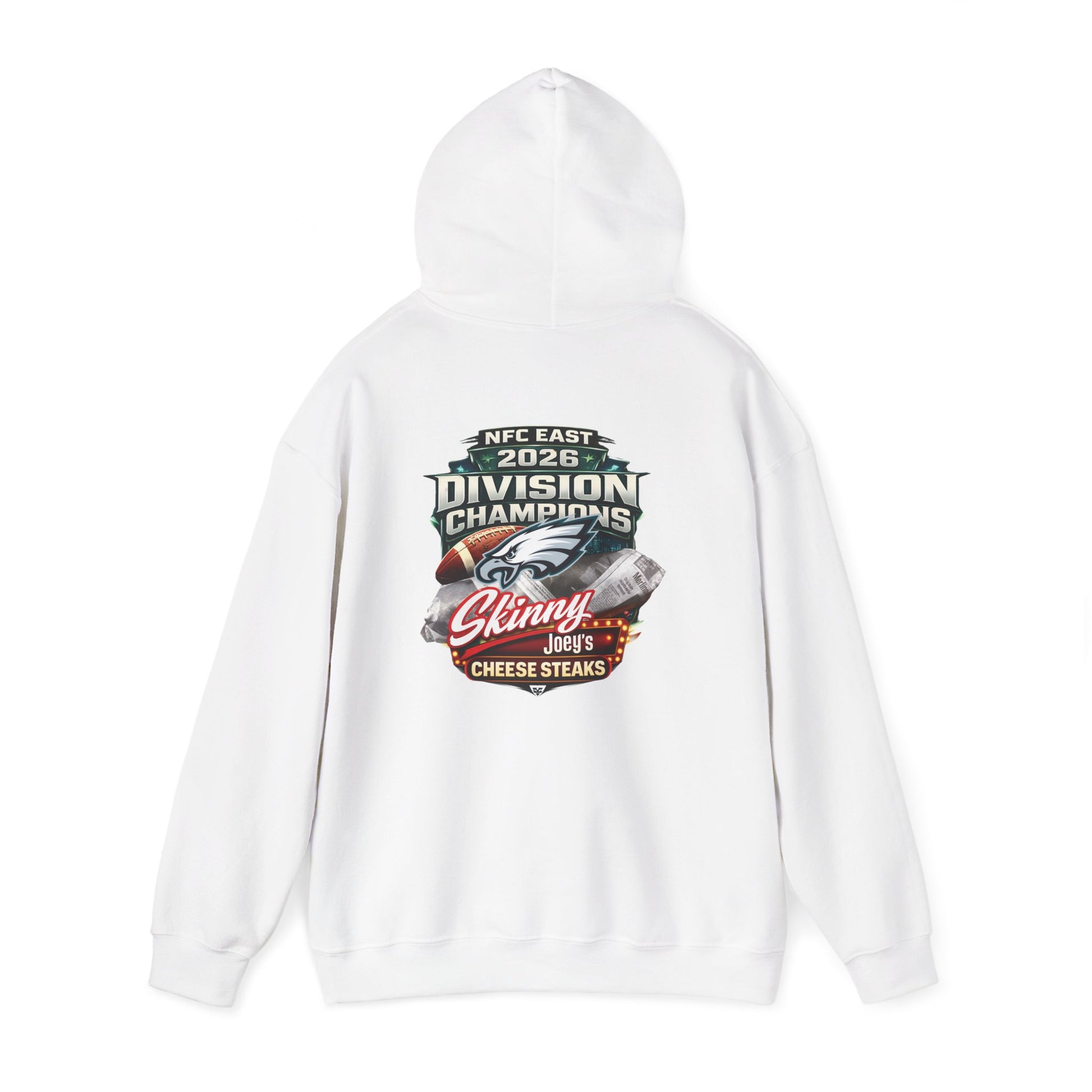 This soft, midweight hoodie wears like a local medal of honor—comfortable, familiar, and unapologetically Philly. The front features a vintage diner–style Skinny Joey’s patch logo, while the back celebrates the Eagles’ 2026 NFC East Division Championship with bold team-inspired graphics and layered typography built to stand out on game day.