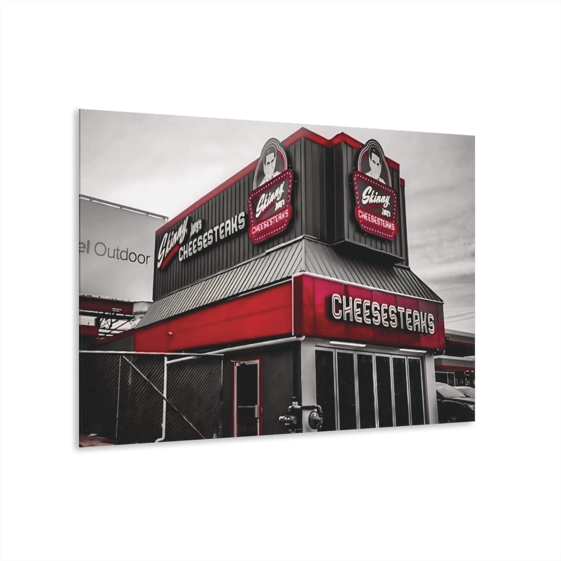 This bold acrylic print of Skinny Joey’s Cheesesteaks storefront captures the power, pride, and passion behind Philly’s most iconic sandwich shop — all in one striking image.