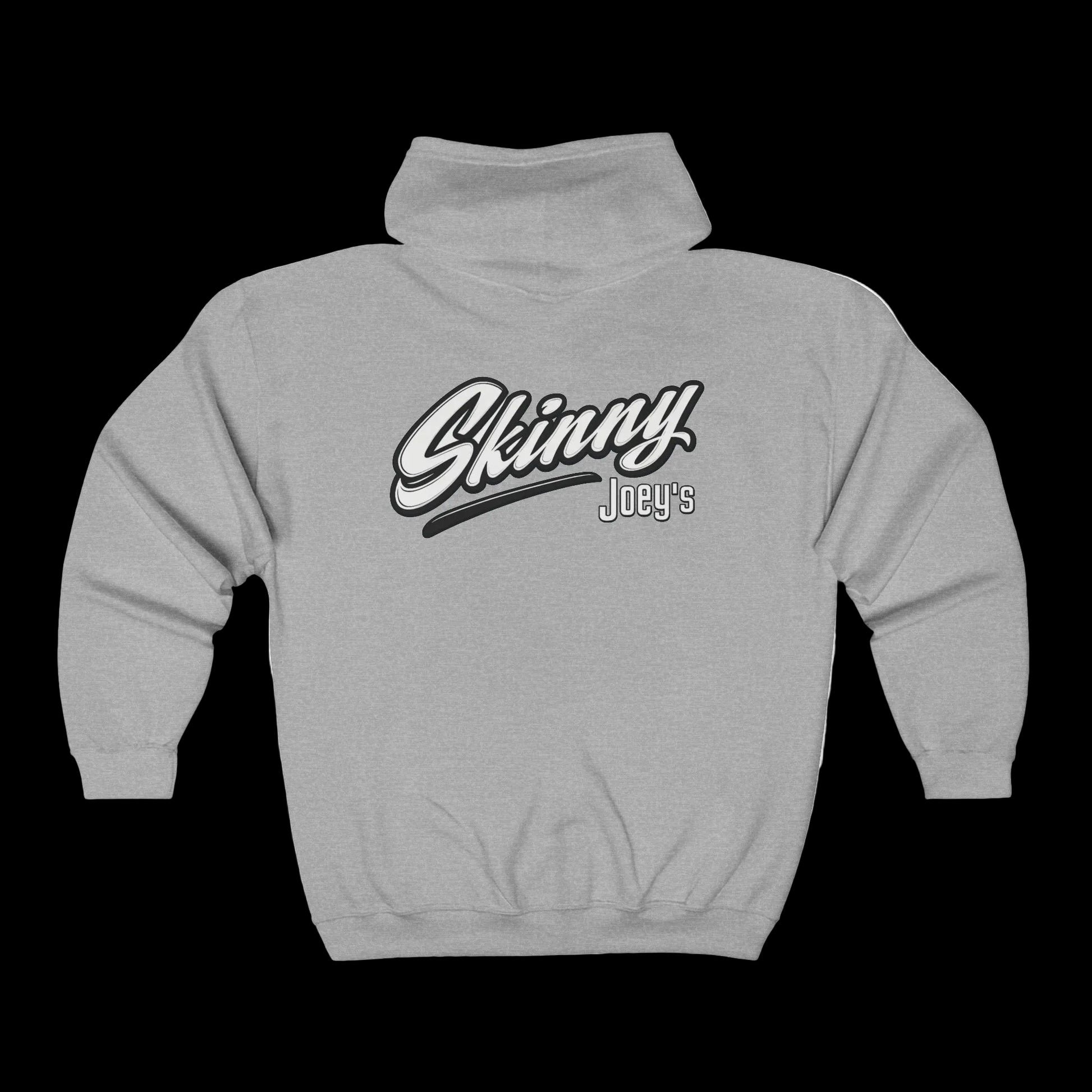 Skinny Joey's Full-Zip Hoodie — Vintage Script Logo Zip-Up Sweatshirt